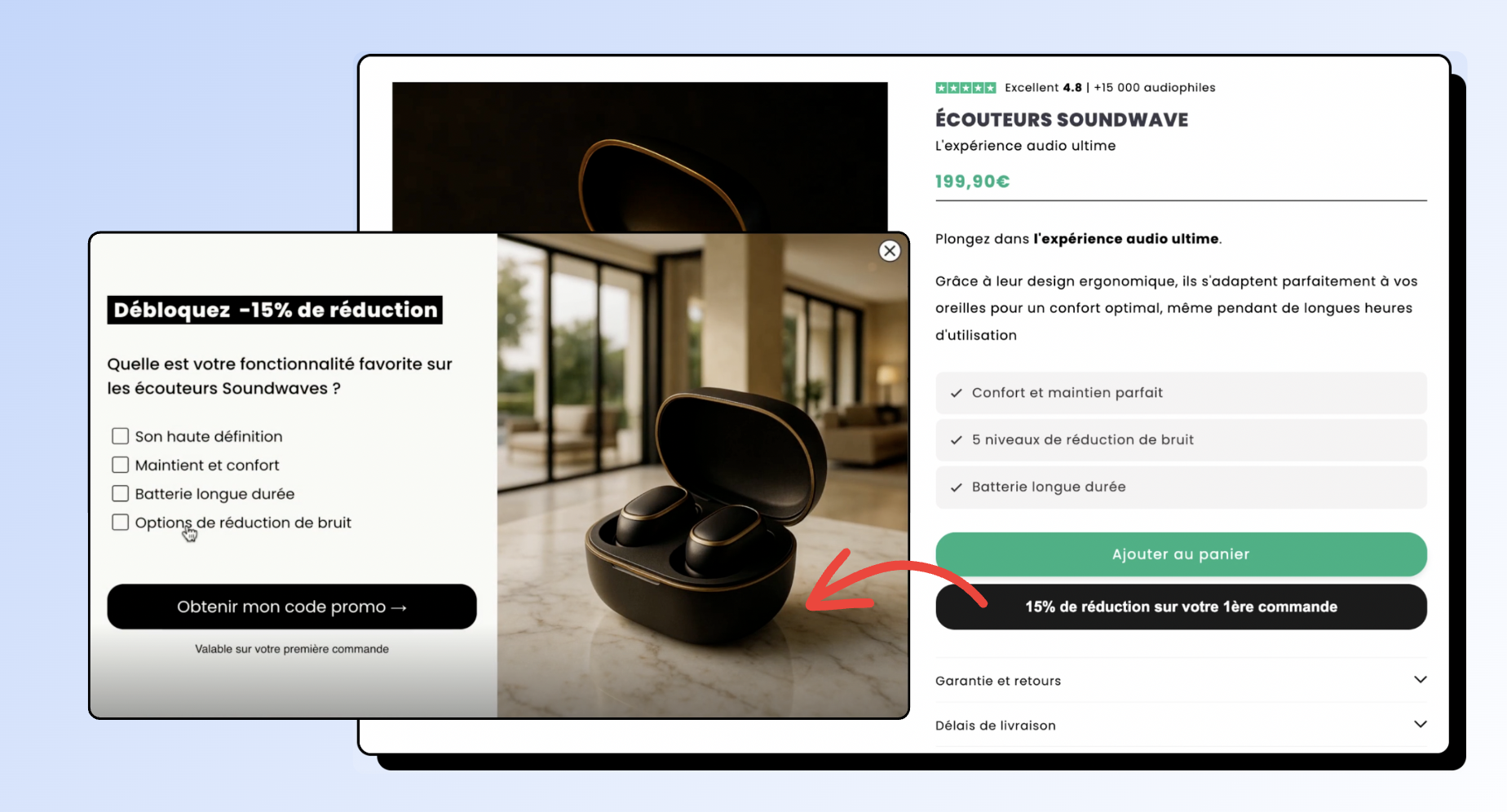 Modifiez l'affichage de votre "Welcome popup" en l'intégrant dans un cta sur votre page produit